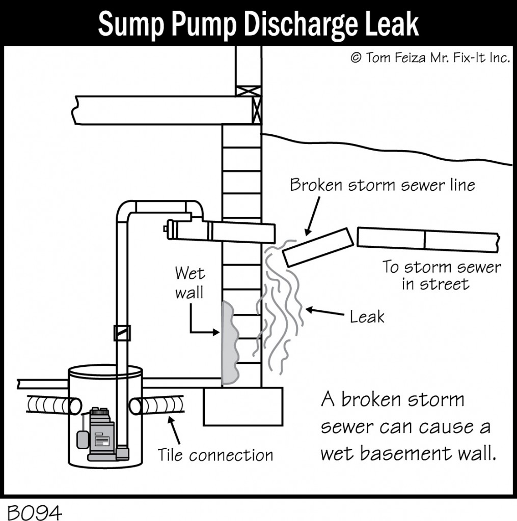 B094_Sump Pump Discharge Leak 1015x1024, image source: www.accuratebasementrepair.com